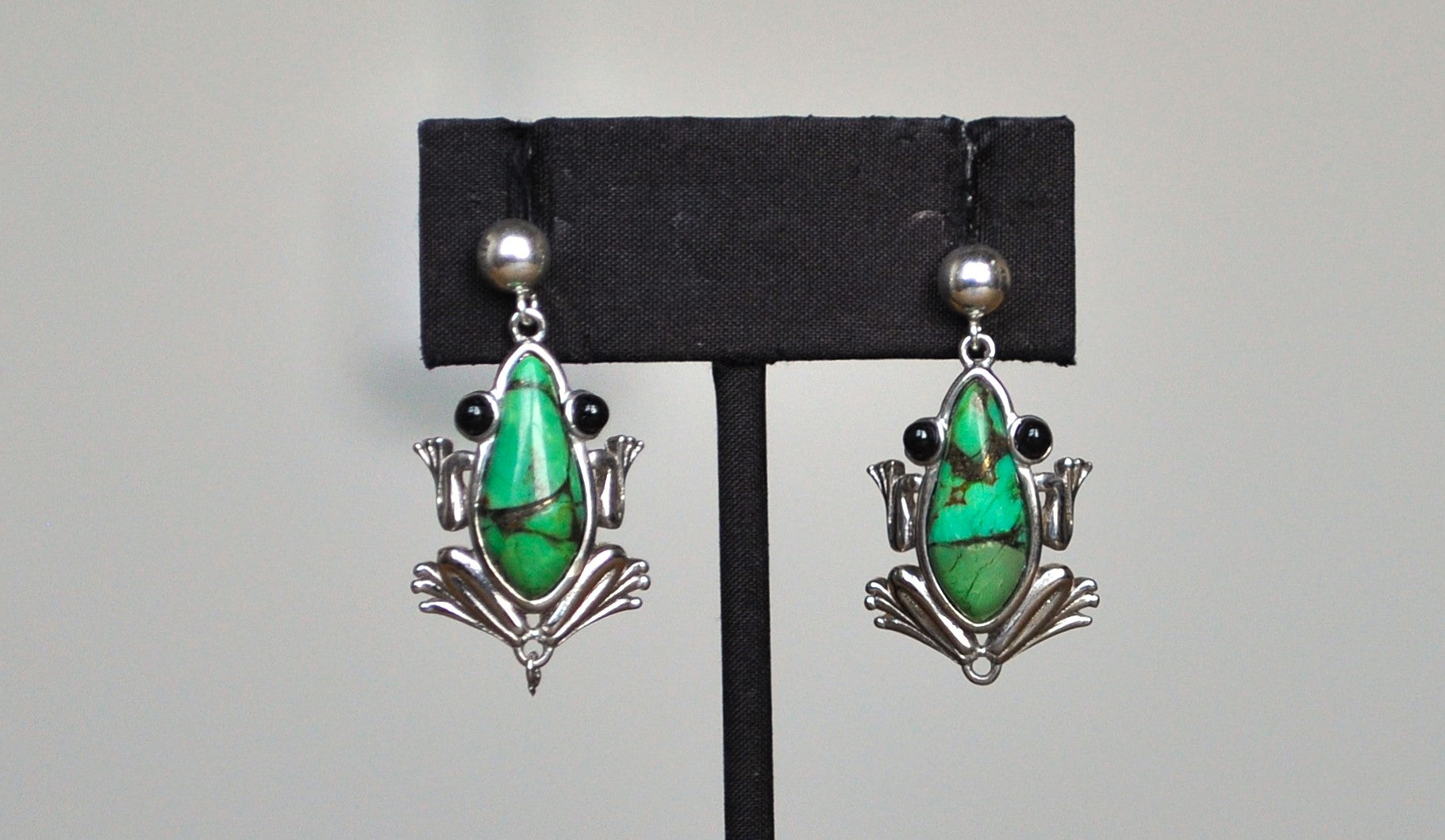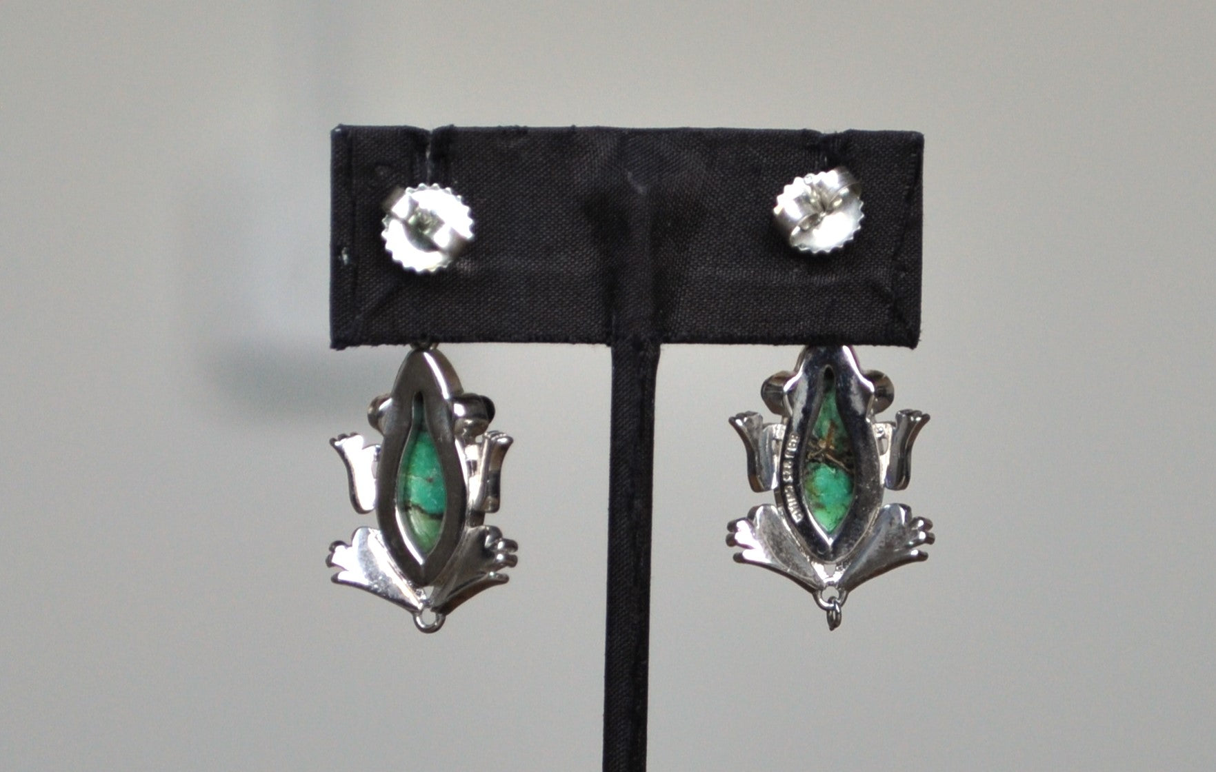 Sterling Silver Green Turquoise Frog Earrings - Stamped and Tested Sterling Silver - BBJ Jewelry