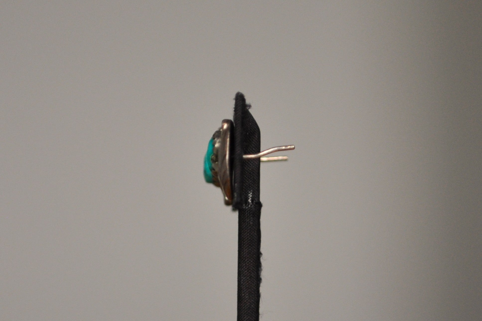 This listing is for the photographed Turquoise Studded Leaf Earrings. Beautiful sterling silver earrings featuring turquoise stones encapsulated in an edgy frame with a leaf adjacent. The earrings lack backs. Turquoise has been used for thousands of years and continues to be an important symbol across hundreds of cultures. The use of Turquoise was heavily used by Native Americans who believe it is made from their own tears seeping into the earth after they had experienced a long drought.