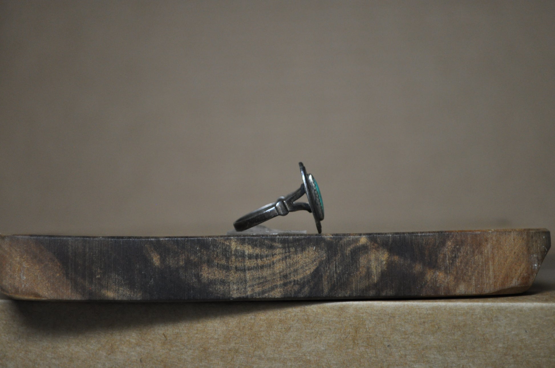 This listing is for the photographed Bell Trading Post Sterling Silver Slender Oval Turquoise Stone Ring - Size 6. It is stamped with the Bell Trading Post hallmark from 1961-1972 and "Sterling". Bell Trading Post was established on Route 66 in Albuquerque in 1932 and catered to tourists traveling on the new highway. They copied the Fred Harvey business model of creating machinery to aide their Native American workers in producing jewelry. The Navajo believed turquoise was a sacred stone used for protection from evil, good fortune, and health. The turquoise blue is very special in Navajo culture resembling the sky and water.