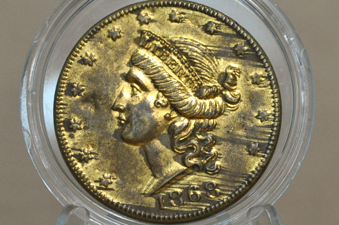 This listing is for the 1868 N.Y. Munn & Co. Scientific American Solicitor of Patents Shell Card Token. This is a "shell card" token made of brass over a cardboard core. The token was issued by Munn & Co., publishers of the Scientific American magazine and patent solicitors, located at 37 Park Row, N.Y. The reverse side lists their services, "Solicitors of American & Foreign Patents". The date 1868 is found on the token's obverse side featuring a Lady Liberty head design.