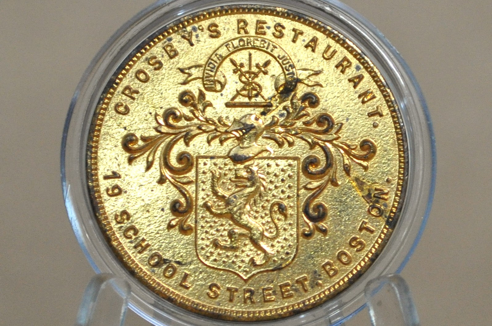 This listing is for the Vintage Crosby's Restaurant Commemorative 5 Year Celebration. The restaurant was opened in 1900 by Freeman Crosby, son of a sea captain. It occupied an entire five-story building with two dining floors. The business operated as a corporation with Crosby as its president. Menus from the time offered extensive dinner options, "cooked to order" meals, and temperance drinks. Freeman Crosby died by suicide in 1907, but the restaurant continued to operate until around 1916. Interesting Find!