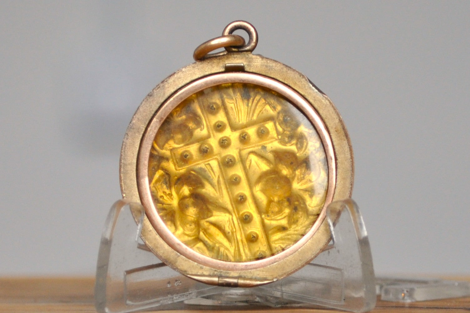 This listing is for the photographed Gold Filled Lily Flower Cross Pendant. Beautiful gold filled pendant featuring a cubic zirconia studded cross/crucifix adorned with lily flowers. The item is a broken piece as the back locket portion of the pendant did not come with it. The lily flower is symbolized in the Bible and Christian religions as purity, beauty, and God's provision. Perfect pendant to represent your faith, love for flowers, or gold is just your color!