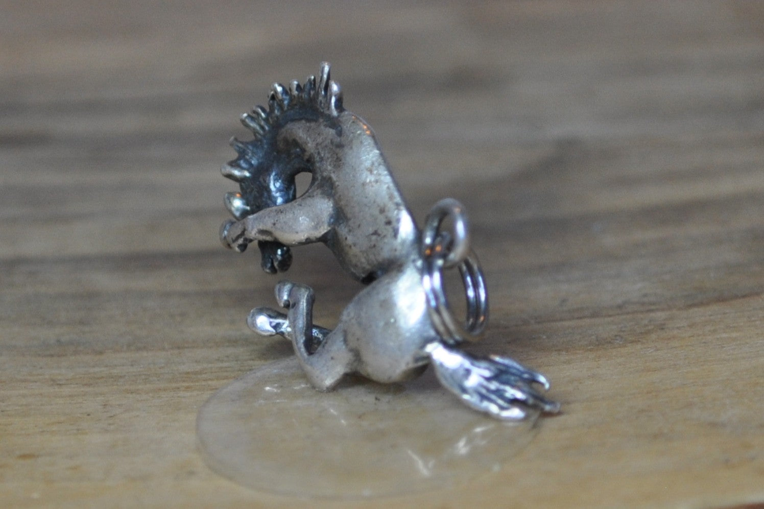 This listing is for the photographed Silver Bucking Bronco Charm. This beautiful sterling silver buckling bronco charm symbolizes freedom, power, and independence. Stamped on the clasp is "Beau Sterling". Horses have been worshipped spiritually throughout their existence in early European cultures, all across the Americas, and northern Asian countries like Mongolia.