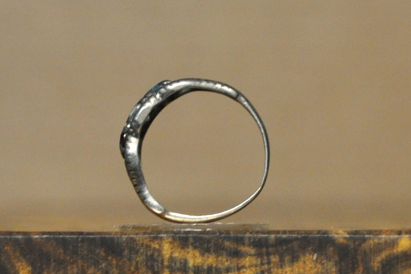 This listing is for the photographed Sterling Silver Mother's/Family Birthstone Ring - Size 6. Stunning sterling silver ring featuring three birthstones, from left to right in the first picture - ruby-July, Diamond-April, and Blue Sapphire-September. Stamped inside the ring is "Sterling FA". Beautiful commemorative family ring to share your love!