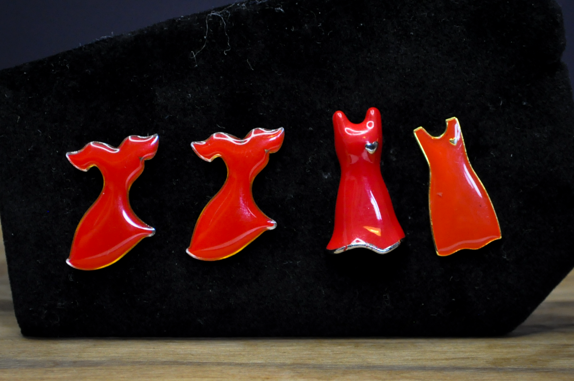 This listing is for the Set of 4 Vintage Red Dress Enamel Lapel Pins Macy's Women's Heart Health Awareness Symbols. This set of four Red Dress lapel pins features a unique variety of silhouettes representing the iconic national symbol for women’s heart disease awareness. Originally part of "The Heart Truth" campaign and the American Heart Association’s Go Red For Women movement, and famously distributed through Macy’s as part of their annual fundraising efforts, each pin carries deep significance for heart health advocacy. Interesting Find!