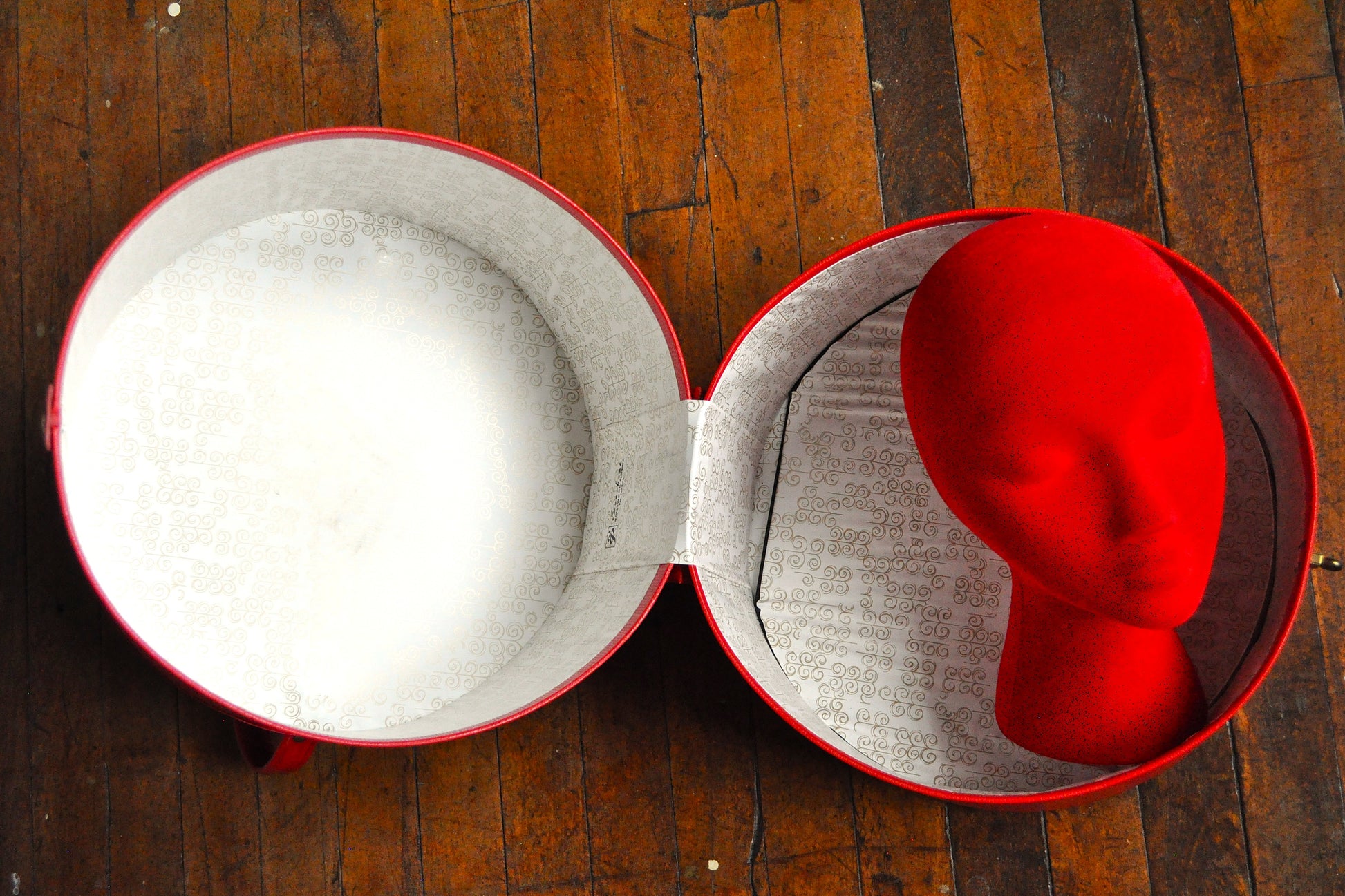 Vintage Everbest Hollywood Florida 1960s Crimson Red Wig Box - Contains Mannequin Head - Wig Not Included - Lockable Red Wig Box