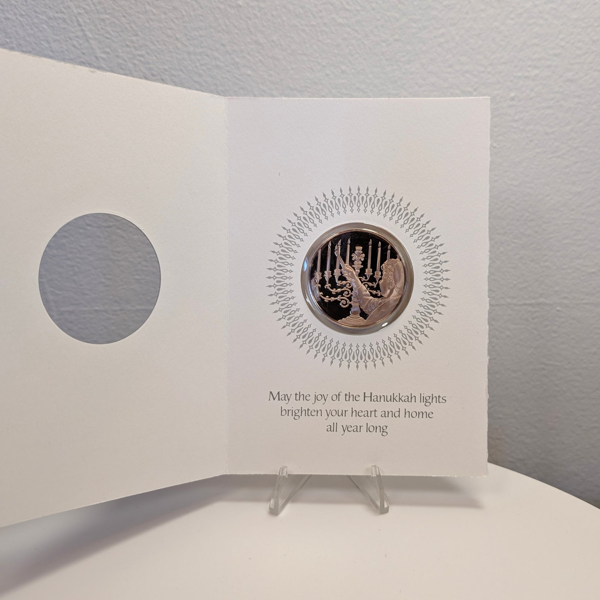 1973 Happy Hanukkah Medal Greeting Card Franklin Mint Ernest Lauser