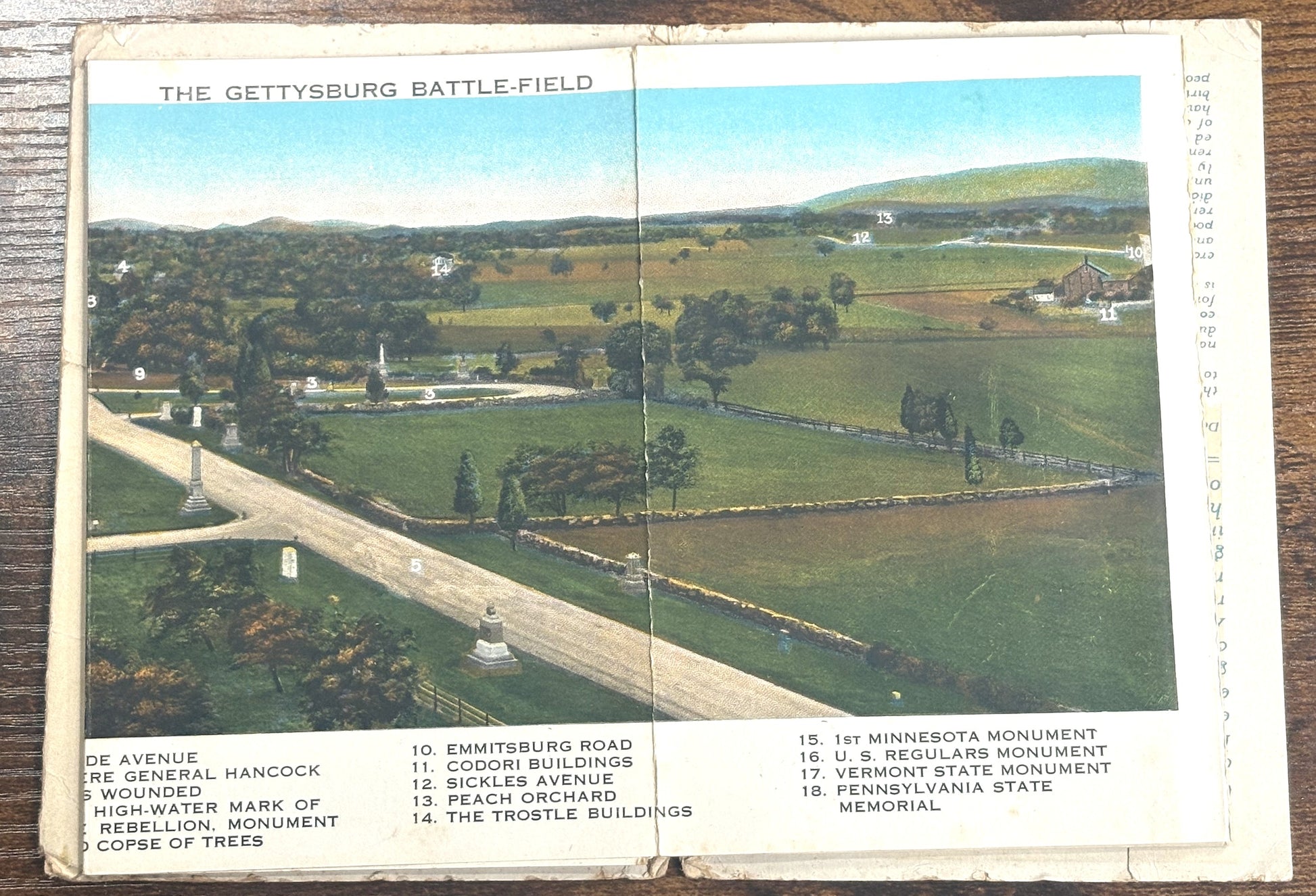 This listing is for the Gettysburg, Pennsylvania Souvenir Folder. These images showcase other iconic Gettysburg landmarks, battlefields, and historical figures and the Gettysburg Address.