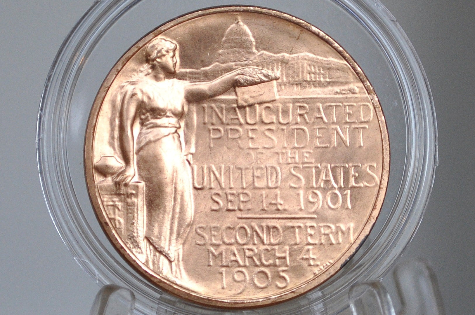 Commemorative token for Teddy Roosevelt's second inauguration using the obverse originally designed by Charles E. Barber in 1905. Thanks for stopping by Treasure Hunter Co!
