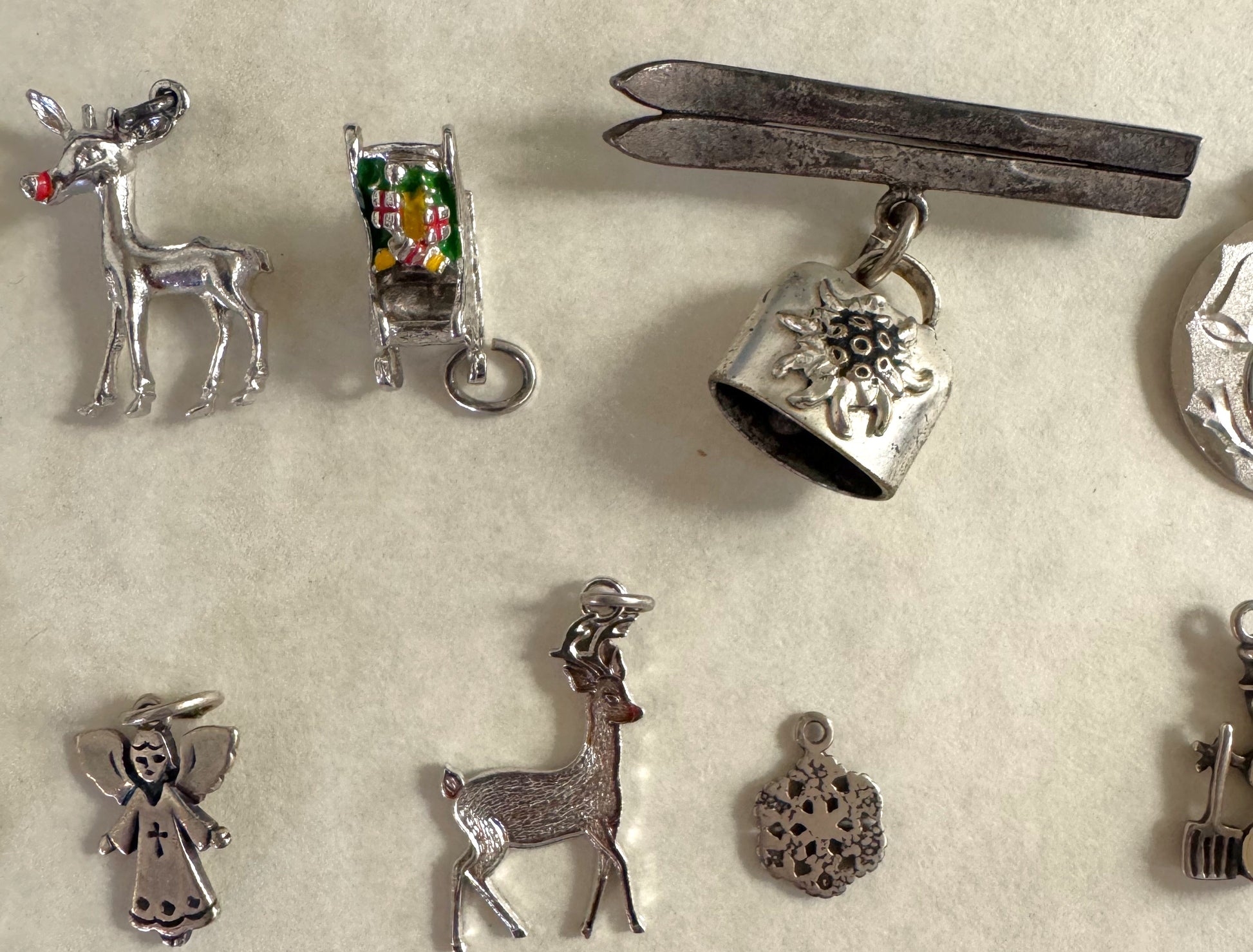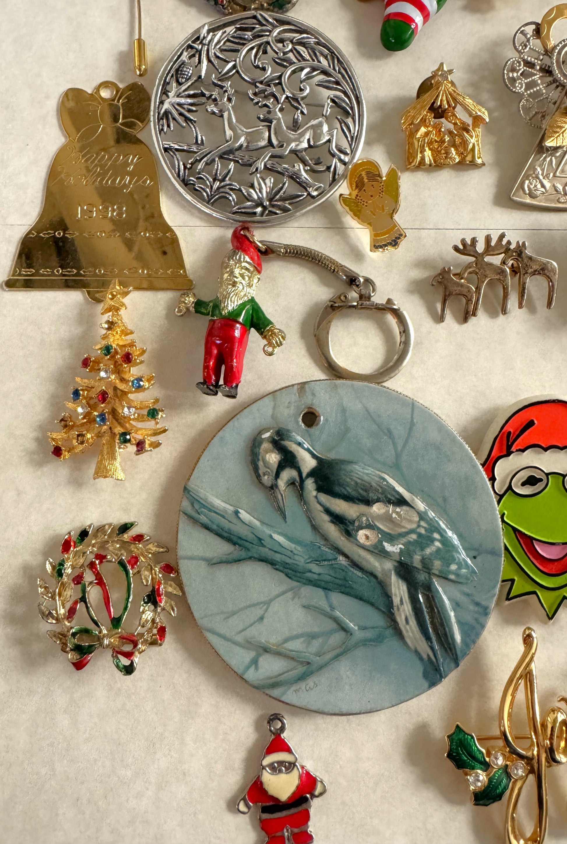 Christmas Jewelry! - Large Lot of Christmas Charms, Pins/Brooches, Ornaments, and More - Sterling Silver, Enamel, Plastic