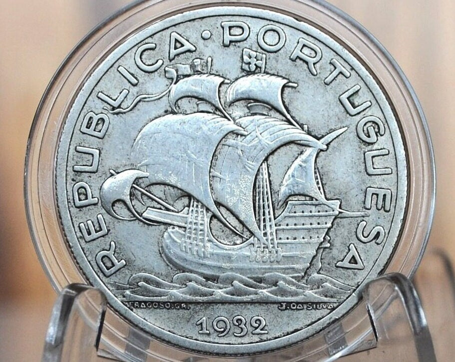 1932 Portuguese Silver 10 Centavos Portugal - Beautiful Design, Simple - Republica Portugesa Ten Centavos 1932 - Portuguese Coin