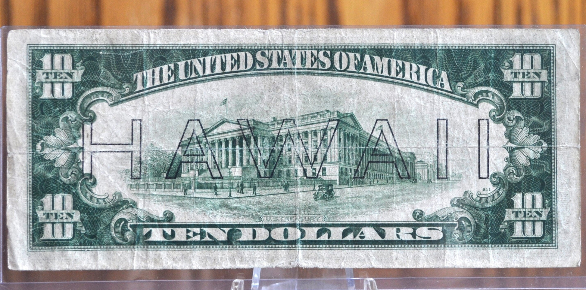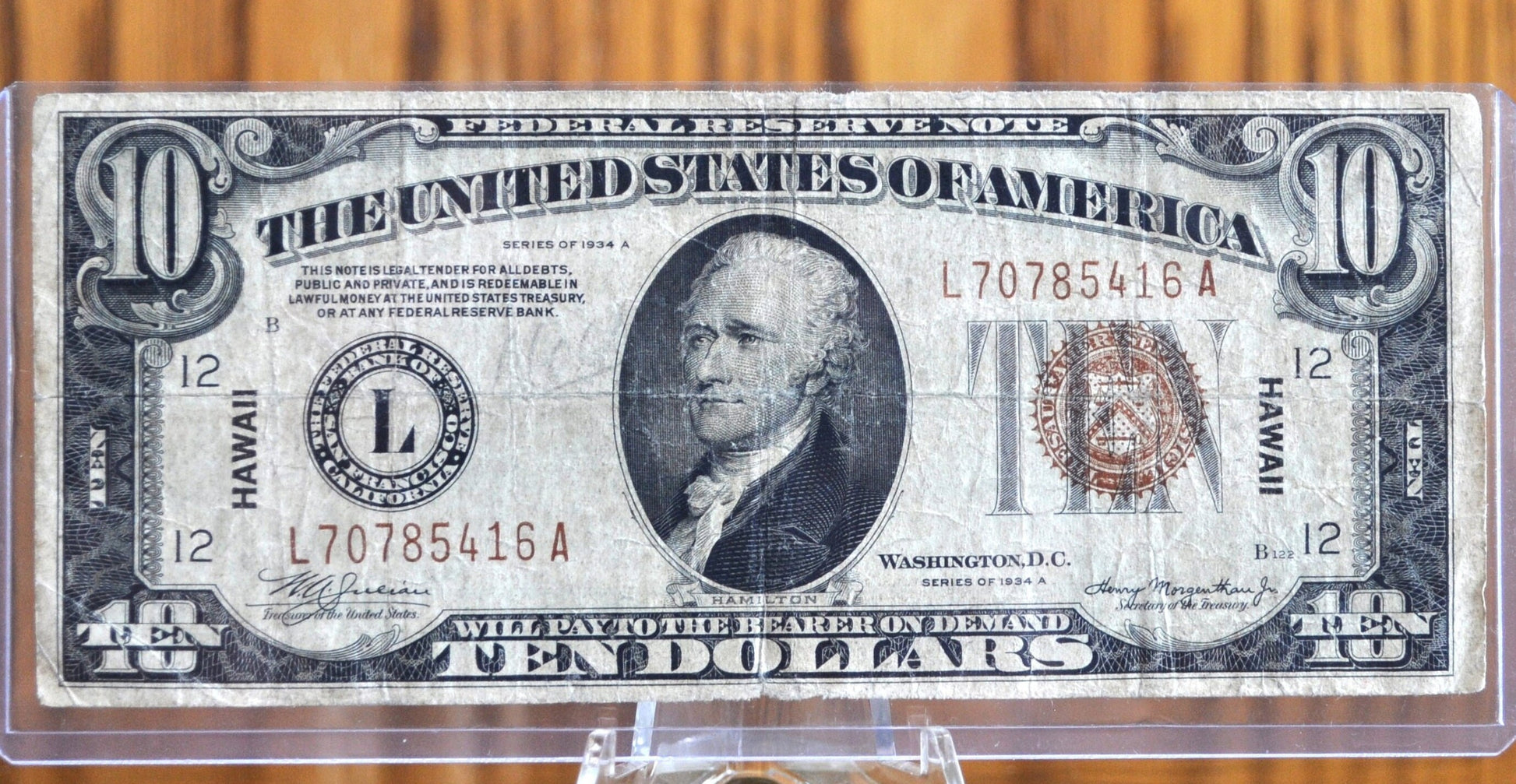 1935 10 Dollar Hawaii Overprint FRN - VG/F (Fine) Grade - 1935 Hawaii Series Ten Dollar Brown Seal - 1934 Hawaii Overprint Fr2303