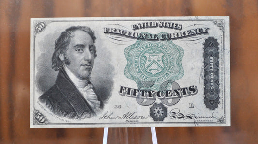1863 US Fractional Currency 50 Cent Note - Third Issue - Design "a" only on obverse - 1863 Fifty Cent Fractional Bank Note - Fr#1342