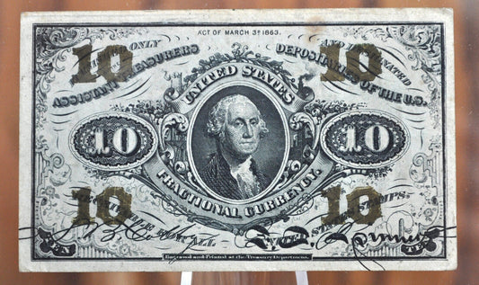 Authentic 1863 10 Cent Fractional Note Fr#1257 / 1863 Fractional Currency - Cull Grade / Condition - 2nd Issue Fractional Note Fr1257