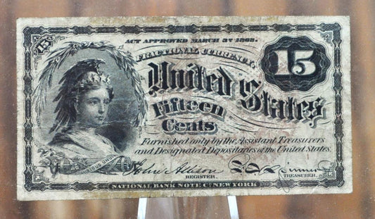 4th Issue 15 Cent Fractional Note 1863 - VF Condition - Unwatermarked Paper - Fourth Issue Fifteen Cent Fractional Currency Note - Fr1268