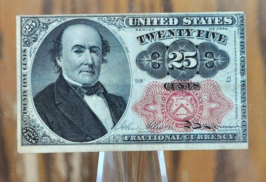 4th Issue 1874 25 Cent Fractional Note - Choice of Grade - Blue Tint/Purple Fibers - Rarer Fourth Issue Fractional Note - Fr.1303