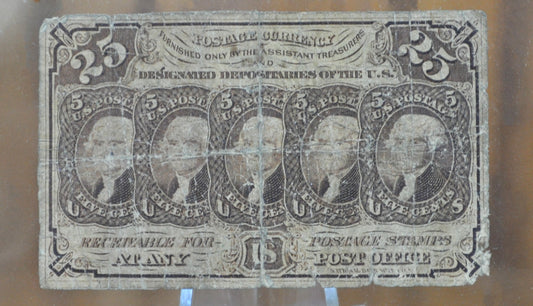 2nd Issue 25 Cent Fractional Note - Cull Grade - "18-63" on reverse - Second Issue Twenty-Five Cents Fractional Note - Fr.1284