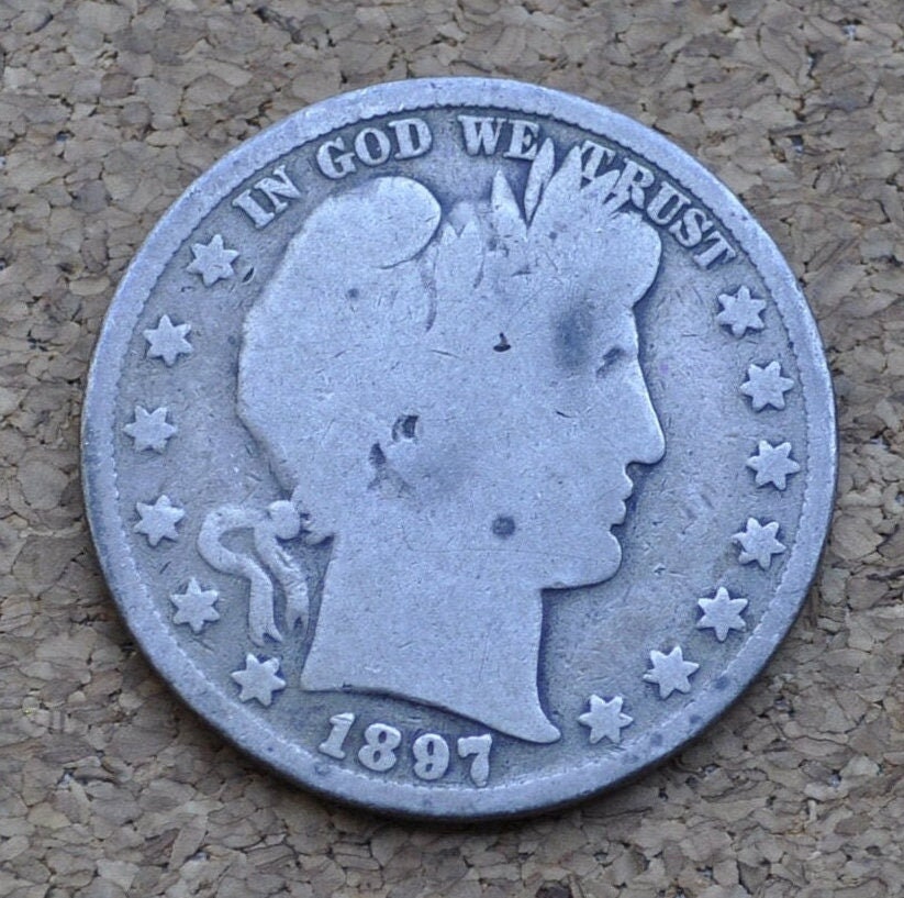 This listing is for one 1897 Barber Silver Half Dollar, as pictured. Choose by grade / condition. No mint mark, denoting the Philadelphia Mint.