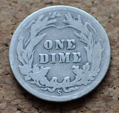 1910-S Barber Dime - San Francisco Mint - 1910 S Barber Dime - Silver Dime - G (Good) Grade / Condition