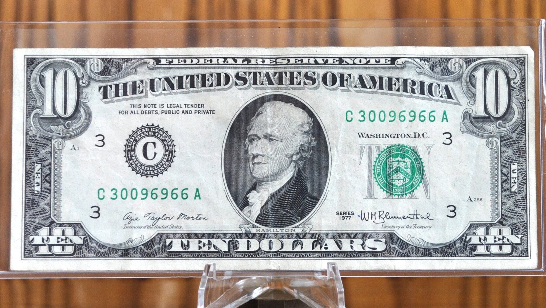This listing is for the photographed 1977 10 Dollar Federal Reserve Note - XF (Fine) Grade / Condition. Philadelphia issue. Fr#2023-C.