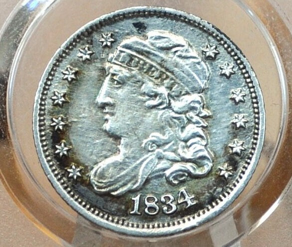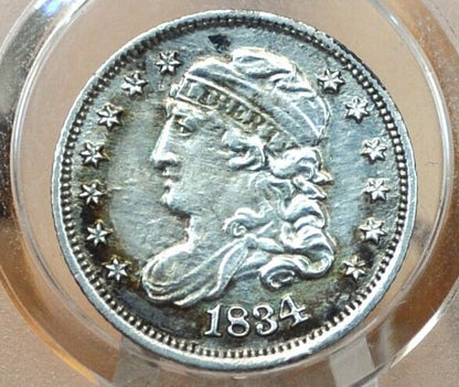 1834 Capped Bust Half Dime - AU Details, Cleaned - 1834 Silver Capped Bust 5 Cent - Early American Coin, 1834 Half Dime