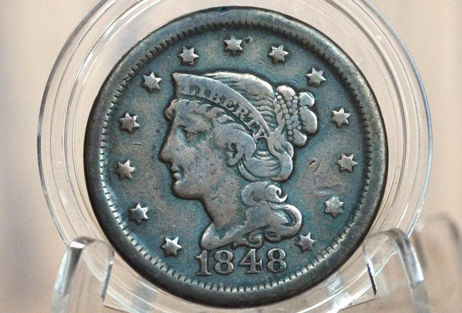 1848 Braided Hair Large Cent - Choose by Grade VG-VF - 1848 Coronet Cent - 1848 US Large Cent - Braided Hair 1839 to 1857