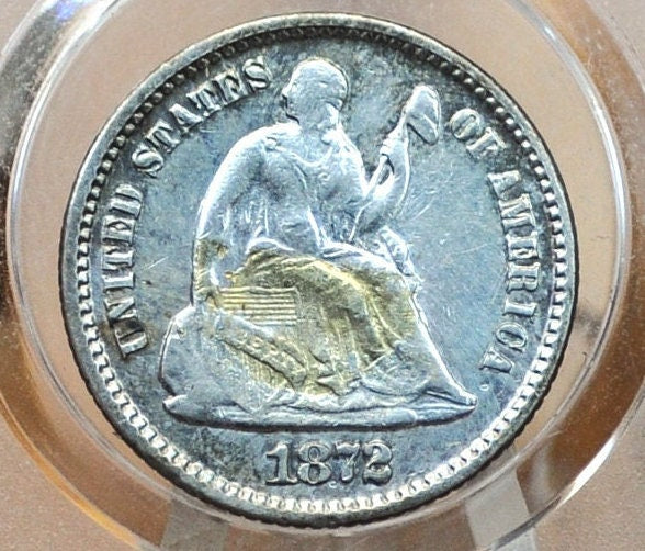 1872 Half Dime - F+ (Fine); Great Coin, 1872 Seated Liberty Half Dime - Early American Coin - 1872 Silver Half Dime Liberty Seated 1872