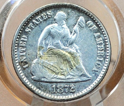 1872 Half Dime - VF, Great Detail, 1872 Seated Liberty Half Dime - Early American Coin - 1872 Silver Half Dime Liberty Seated 1872