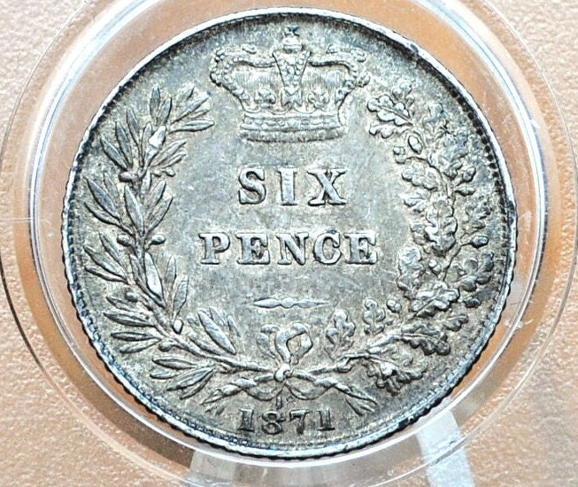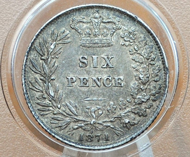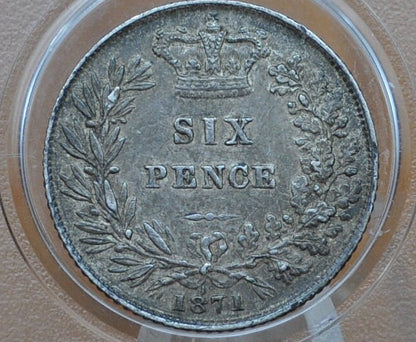 1875 Sixpence Great Britain, Die 18 - Choice AU - Die Crack on Bust - UK 6 Pence 1871 Sterling Silver Six Pence 1871, Unique Coin, Beautiful