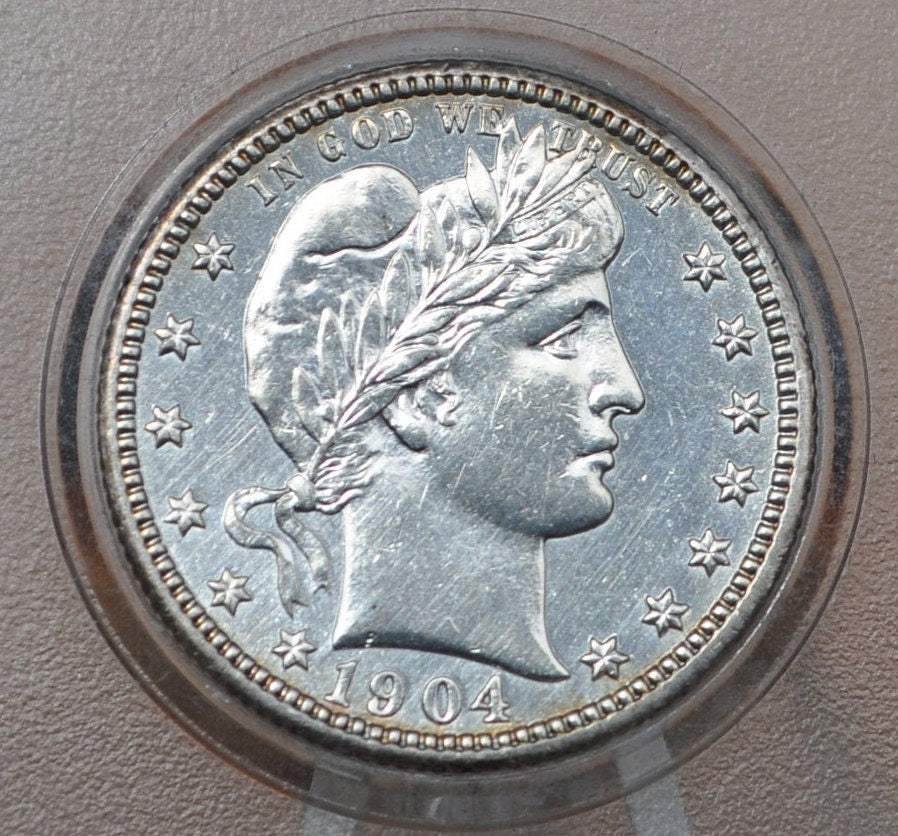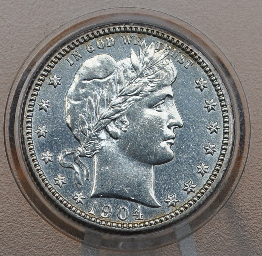 1904 Barber Silver Quarter - Uncirculated, Cleaned - Philadelphia Mint - 1904P Barber Quarter - 1904-P Quarter