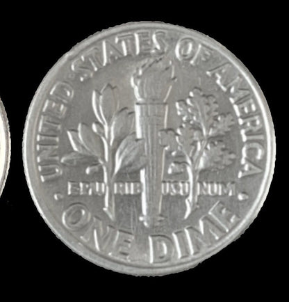 The Roosevelt Dime was introduced in 1946, shortly after the conclusion of World War II and less than one year after the death Franklin D. Roosevelt, the 32nd President of the United States. This replaced the Mercury Dime that ceased to be minted in 1945. The reverse design features a lit torch at center with an olive branch and oak branch positioned to each side. While sitting for a portrait on April 12, 1945, Franklin Delano Roosevelt suddenly complained about a severe headache, slumped forward unconscious, and passed away later that same day.