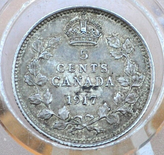 1912 Canadian Silver 5 Cent Coin - AU (About Unc.) Condition - King George - Canada 5 Cent Sterling Silver 1912 Canada