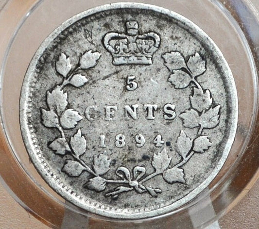 1894 Canadian Silver 5 Cent Coin - VF Detail, Dented - Queen Victoria - Canada 5 Cent Sterling Silver 1894 Canada, Rarer Date, Low Mintage
