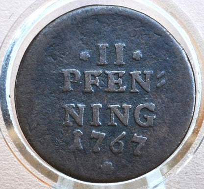 This listing is for the 1767 German States 2 Pfennig photographed. Few of these are known to exist.