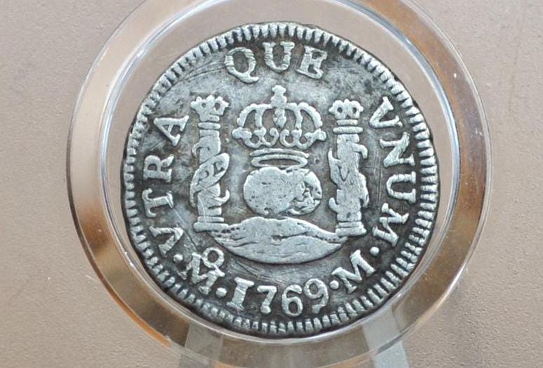 1769 Spanish 1/2 Real - Amazing Detail - Mexico Spanish Colony, Early Colonial Era Coin, Pirate Coin, 1769 Half Real Pillar Type Rarer Date!