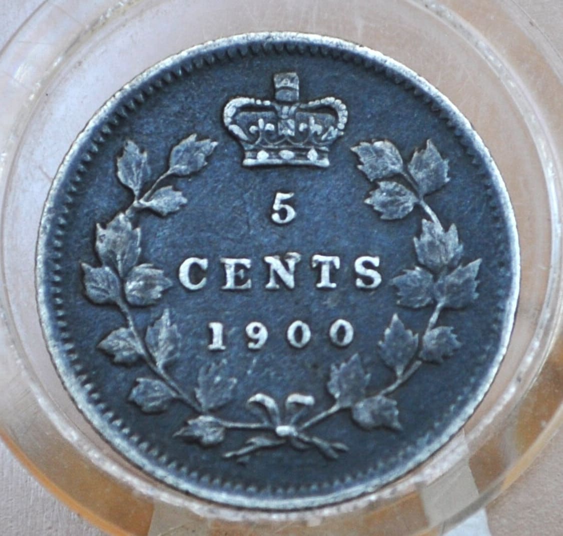 1900 Canadian Silver 5 Cent Coin - XF (Extremely Fine) - Queen Victoria - Canada 5 Cent Sterling Silver 1900 Canada - Lower Mintage
