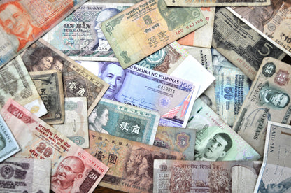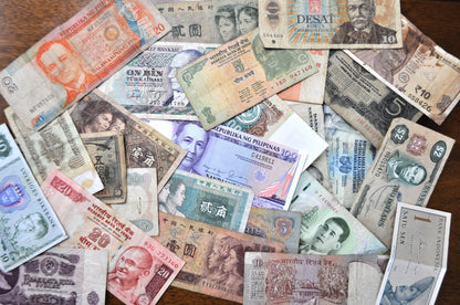 Countries we know we have in these lots: Japanese Currency, Chinese Currency, Thai Currency, Belgian Currency, Russian Currency, English Currency, Canadian Currency, American Currency, French Currency, So many more!!!