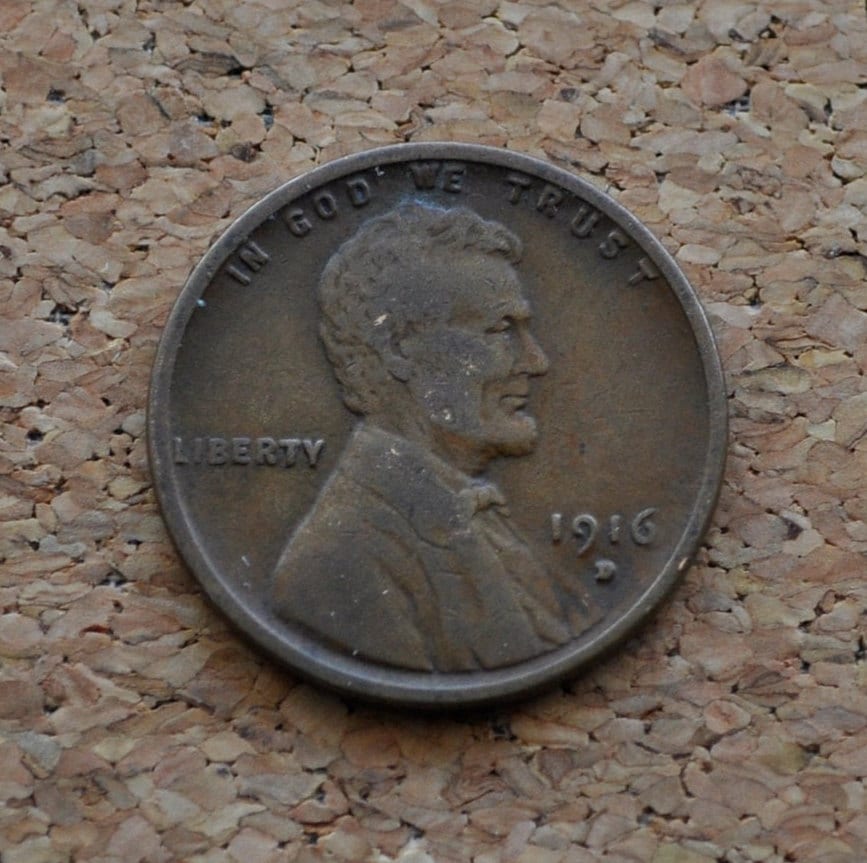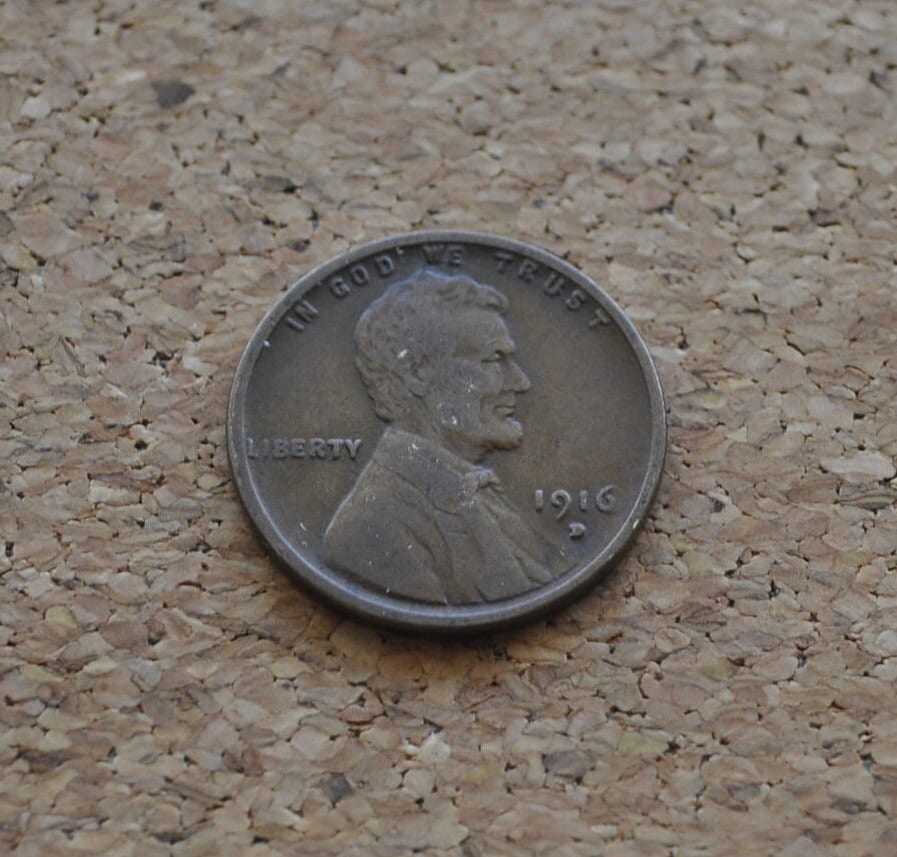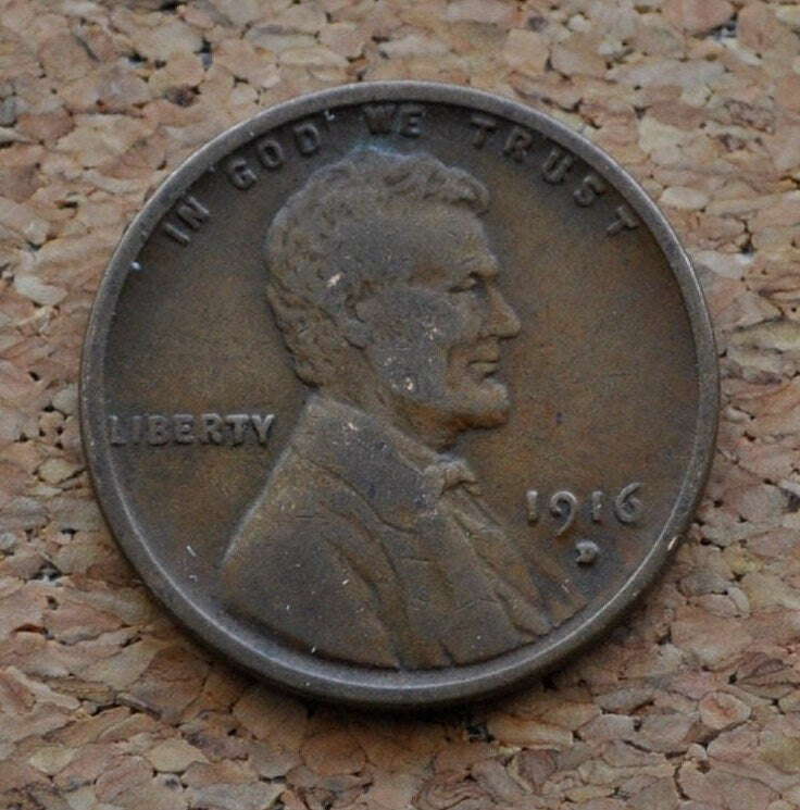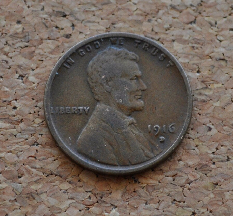 1916-D Wheat Penny - AG (About Good) - Denver Mint - World War I Era Coin - 1916 D Wheat Ear Cent
