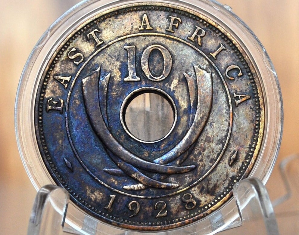 1928 East Africa 10 Cent Coin - Toned Coin - AU Condition - British East Africa Protectorate -