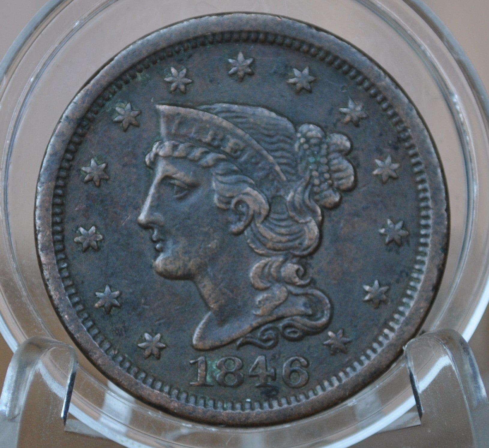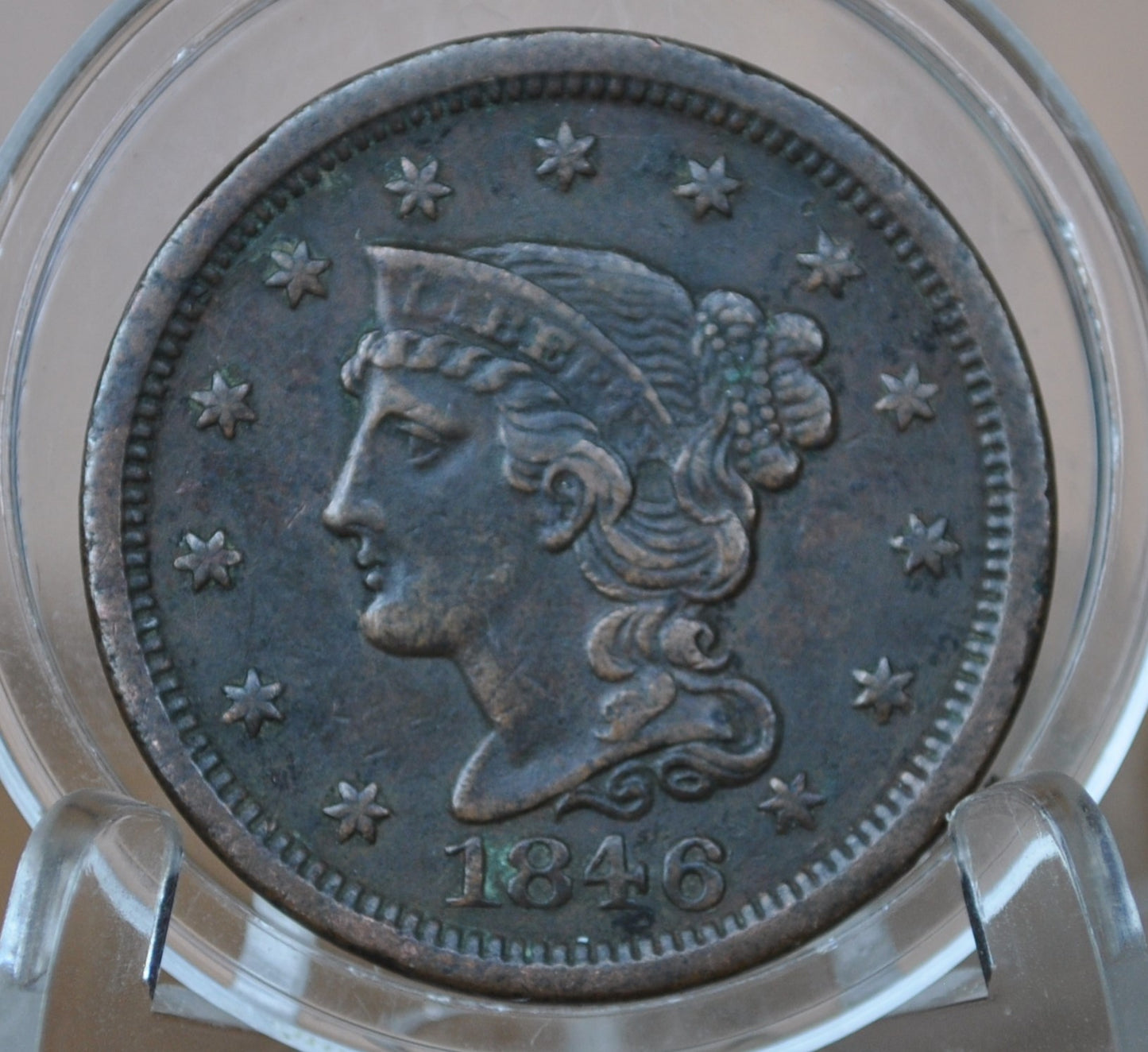 1846 Braided Hair Large Cent - VF Details, Corrosion - 1846 Coronet Cent - 1846 US Large Cent - Braided Hair 1839 to 1857
