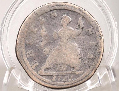 1722 UK Halfpenny - Great Details - 1722 Great Britain 1/2 Penny - Copper Half Penny 1722 - King George I -