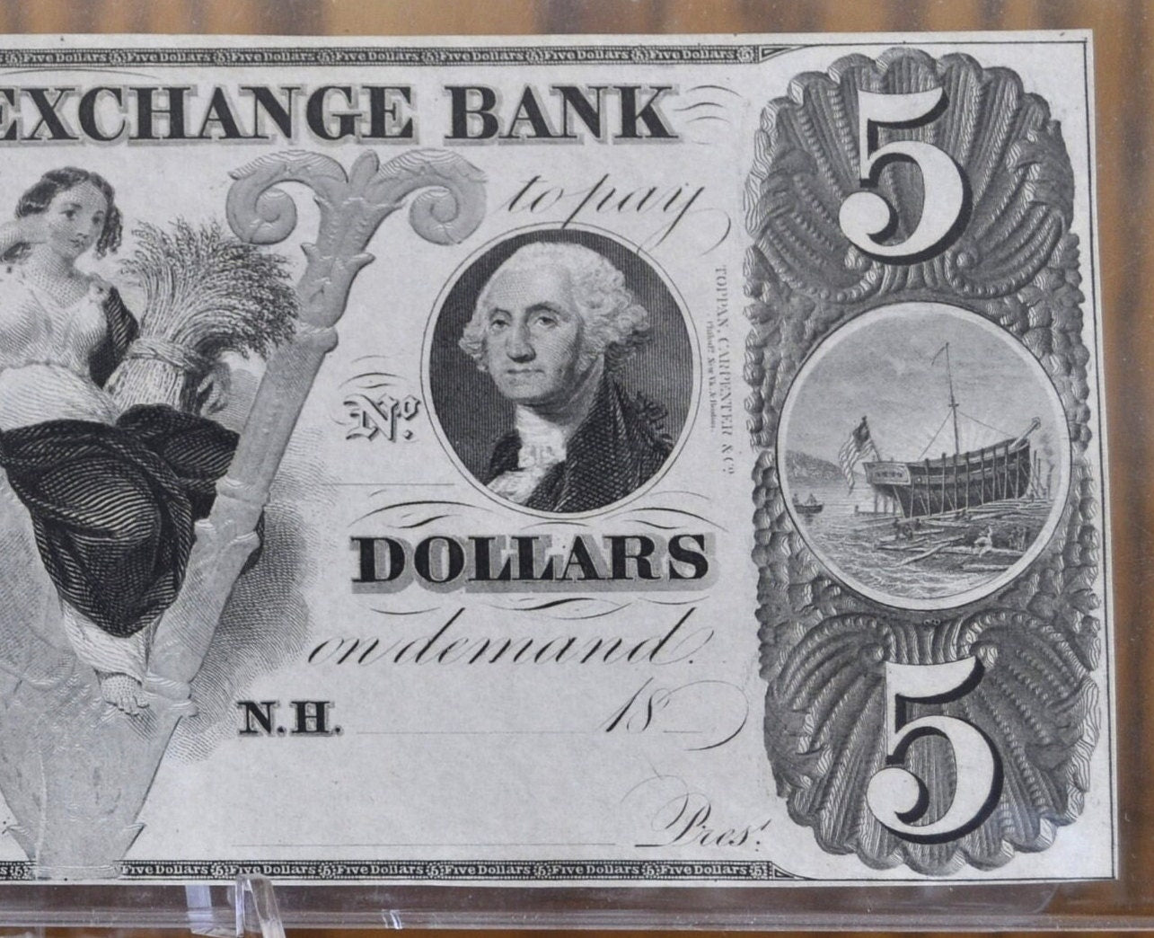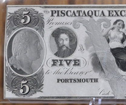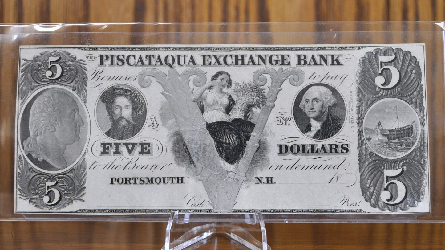 1840s to 1860s Piscataqua Exchange Bank 5 Dollar Paper Banknote, Portsmouth NH - Uncirculated - Five Dollar Note Portsmouth New Hampshire