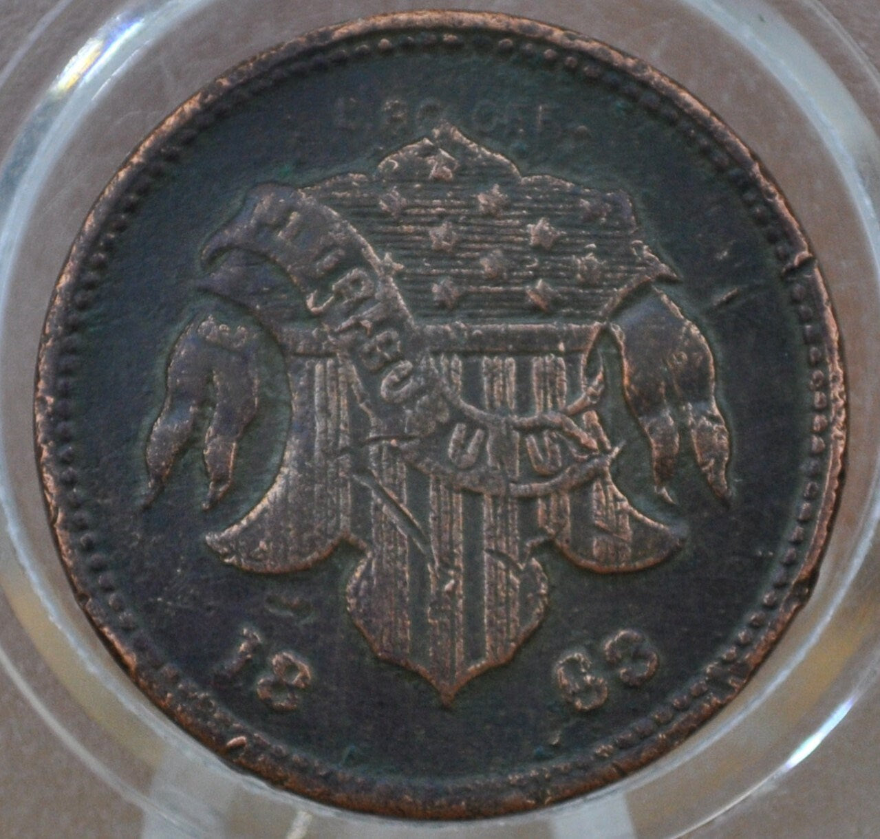 This listing is for one 1863 Civil War Token, as pictured. Choose by type!