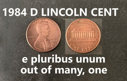 1984 D Lincoln Memorial Penny Cent - Fantastic Condition - 38th Anniversary - Collectible Coin - Denver Mint