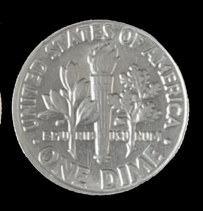 The Roosevelt Dime was introduced in 1946, shortly after the conclusion of World War II and less than one year after the death Franklin D. Roosevelt, the 32nd President of the United States. This replaced the Mercury Dime that ceased to be minted in 1945. The reverse design features a lit torch at center with an olive branch and oak branch positioned to each side. While sitting for a portrait on April 12, 1945, Franklin Delano Roosevelt suddenly complained about a severe headache, slumped forward unconscious, and passed away later that same day.