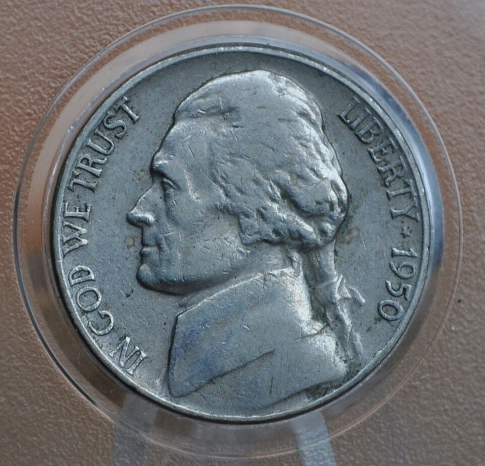 This listing is for one 1950 Jefferson Nickel, as pictured, choose by mint mark and grade! Photos are linked to the options so that you can see what you're looking for!