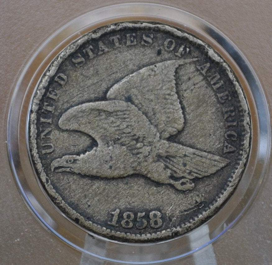 1858 Flying Eagle Penny - F-VF (Fine to Very Fine) Details, with Some Rim Indentation - Rarer Penny Type - 1858 Cent - 1858 Eagle Cent