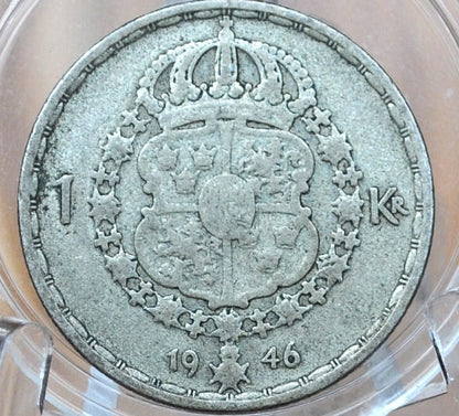 1946 1 Krona Sweden Silver - Swedish One Krona 1946- King Gustaf V 40 % Silver