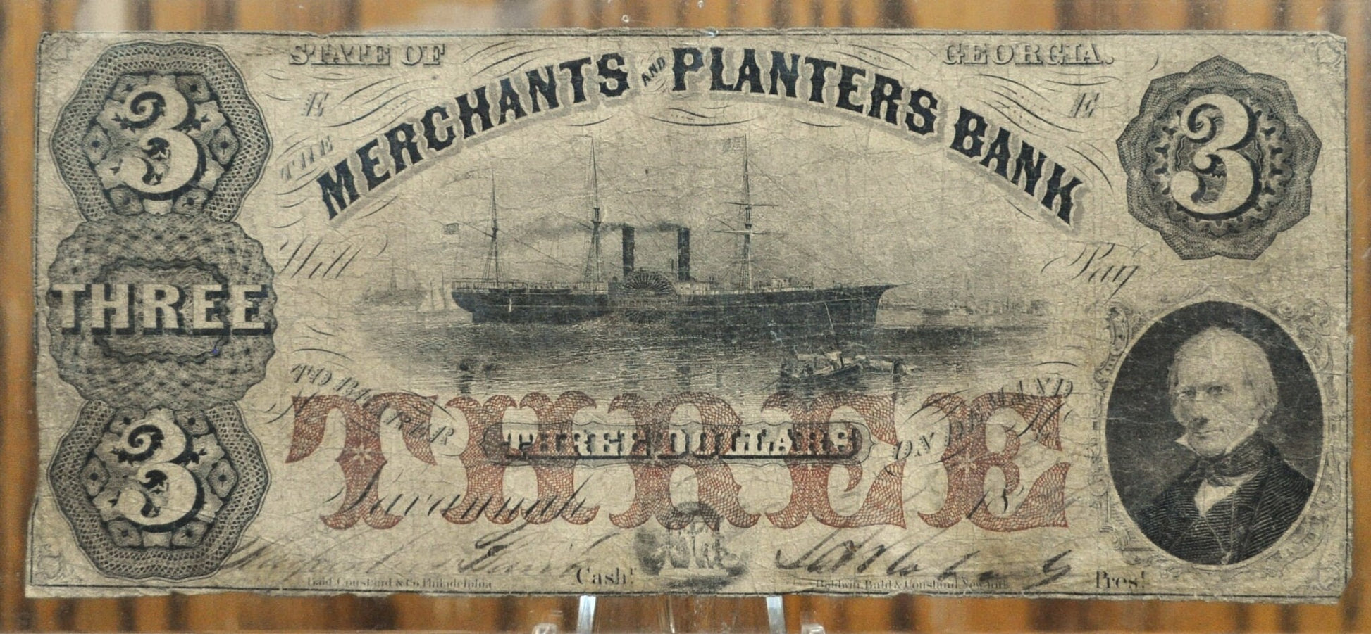 1856 Merchants and Planters Bank 3 Dollar Banknote - Georgia Obsolete Currency - Savannah, GA - 1856 Three Dollar Georgia Obsolete Bank Note