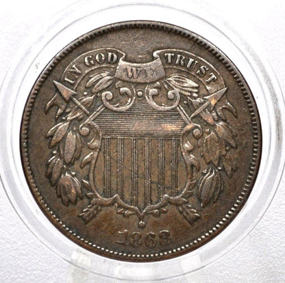 1868 Two Cent Us Coin - G-Xf (Good To Extreemly Fine) Grade / Condition - Civil War Era Coin - 1868 Us 2 Cent Coin 1868 Two Cent Piece